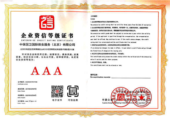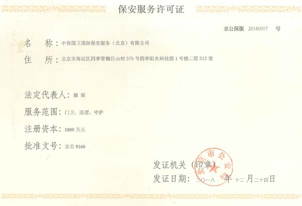 中保國衛(wèi)國際保安服務(wù)(北京)有限公司,屬中保國衛(wèi)集團(tuán)旗下子公司。能全方位的為大型客戶提供優(yōu)質(zhì)的安保、押運(yùn)服務(wù),是集人防和技防于一體的新型正規(guī)化綜合安保押運(yùn)服務(wù)企業(yè),提供人防、物防、技防、聯(lián)網(wǎng)報(bào)*、非武裝押運(yùn)等安防相關(guān)的一站式服務(wù)。 公司在國內(nèi)多省設(shè)立有分公司及分支機(jī)構(gòu),著重提升安全押運(yùn)、智能技術(shù)押運(yùn)及安全技術(shù)防范相關(guān)的服務(wù),業(yè)務(wù)范圍覆蓋全國一、二線城市、港澳地區(qū)以及海外地區(qū)。安保方面主要為政府機(jī)構(gòu)、金融機(jī)構(gòu)、企事業(yè)單位、醫(yī)療衛(wèi)生、高等院校、工業(yè)園區(qū)、大型商場、高檔住宅、智能商務(wù)樓、大型活動提供門衛(wèi)、守護(hù)、巡邏、押運(yùn)(非武裝)、安全檢查、保安特勤、私人護(hù)衛(wèi)、消防中控、安全技術(shù)防范、遠(yuǎn)洋護(hù)航等全方位服務(wù),同時面向國際市場,為中資企業(yè)在“一帶一路”沿線國家投資提供境外安保服務(wù)。 >> 更多內(nèi)容 |